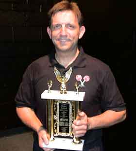 Joe Pierotti, a top level Arizona table tennis player, plays at many tournaments in the Phoenix area as well as in Las Vegas. Joe works at his "real" job for more hours than most humans can, yet after all that stress, Joe manages to be the most polite good natured player in the tournaments. Whether he wins or loses, Joe never gets discouraged and is always the king of good sportsmanship.