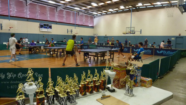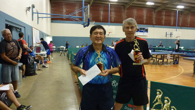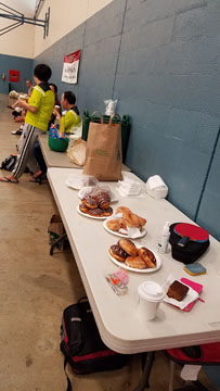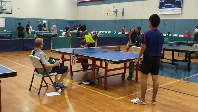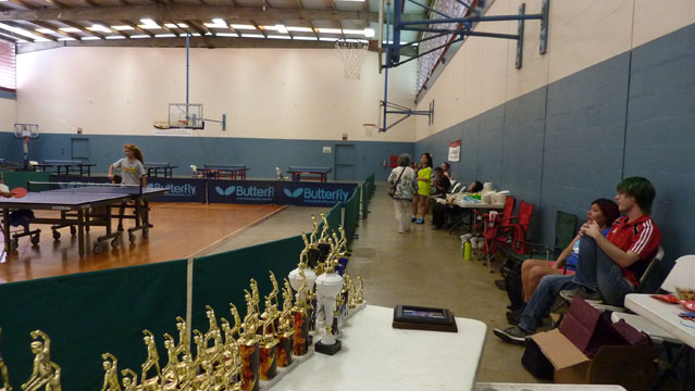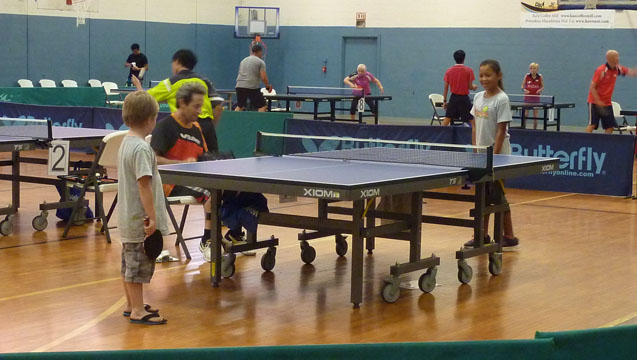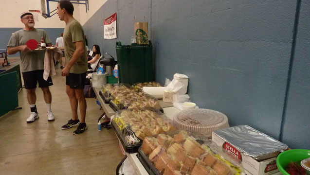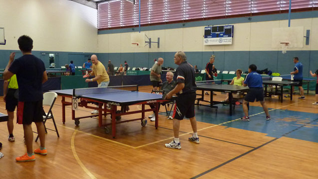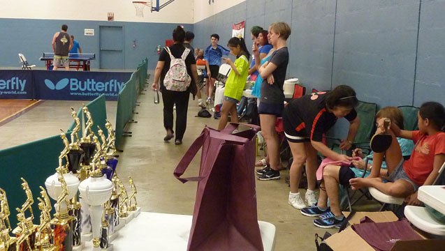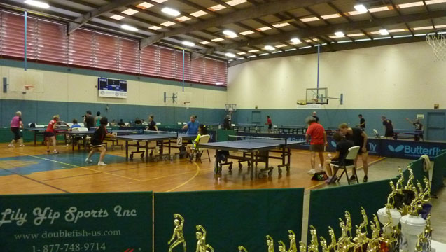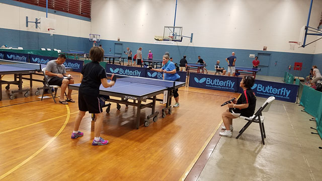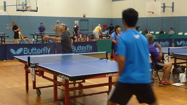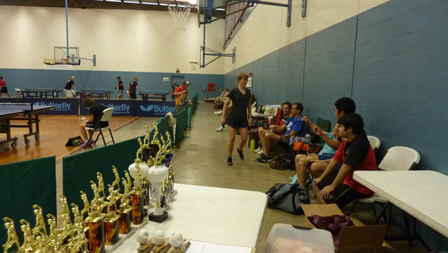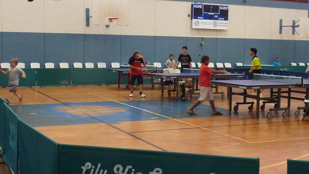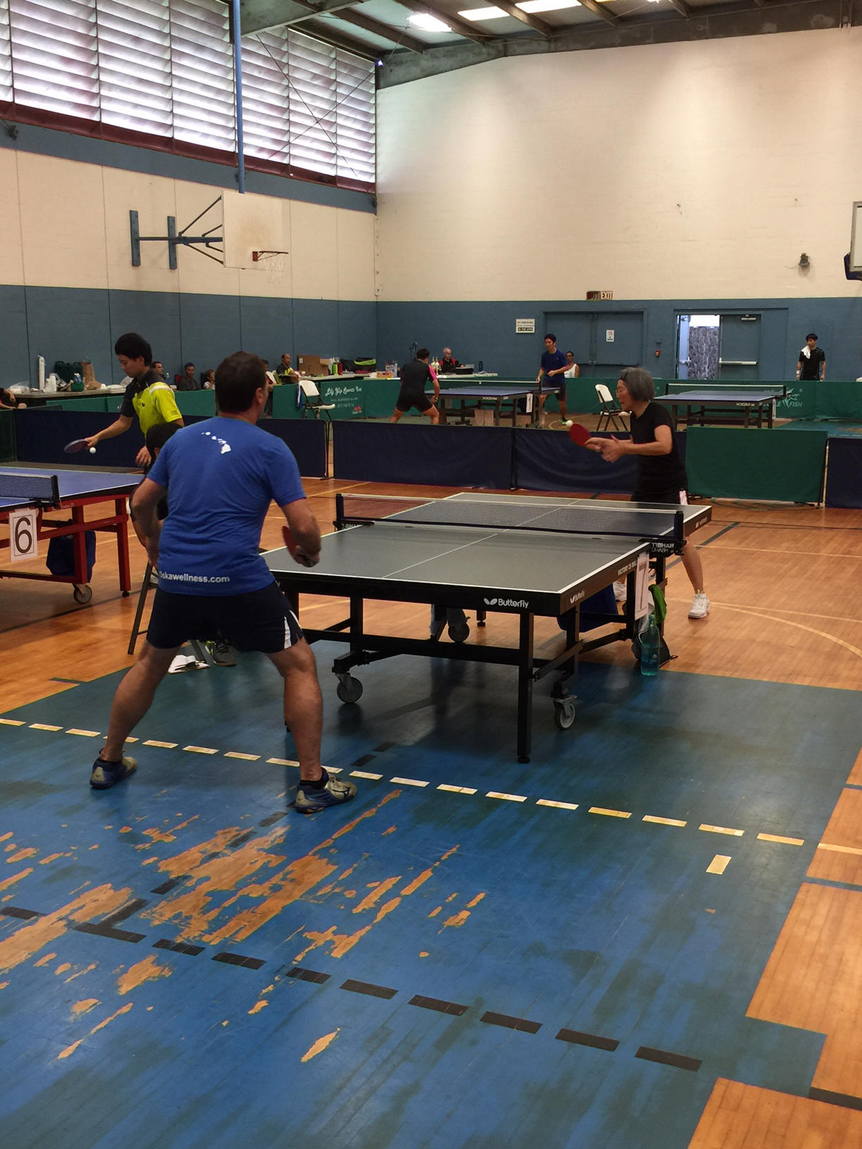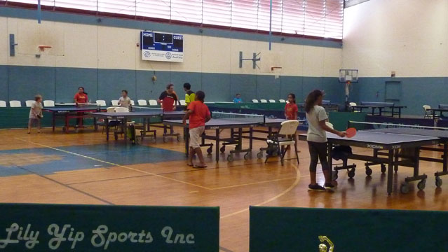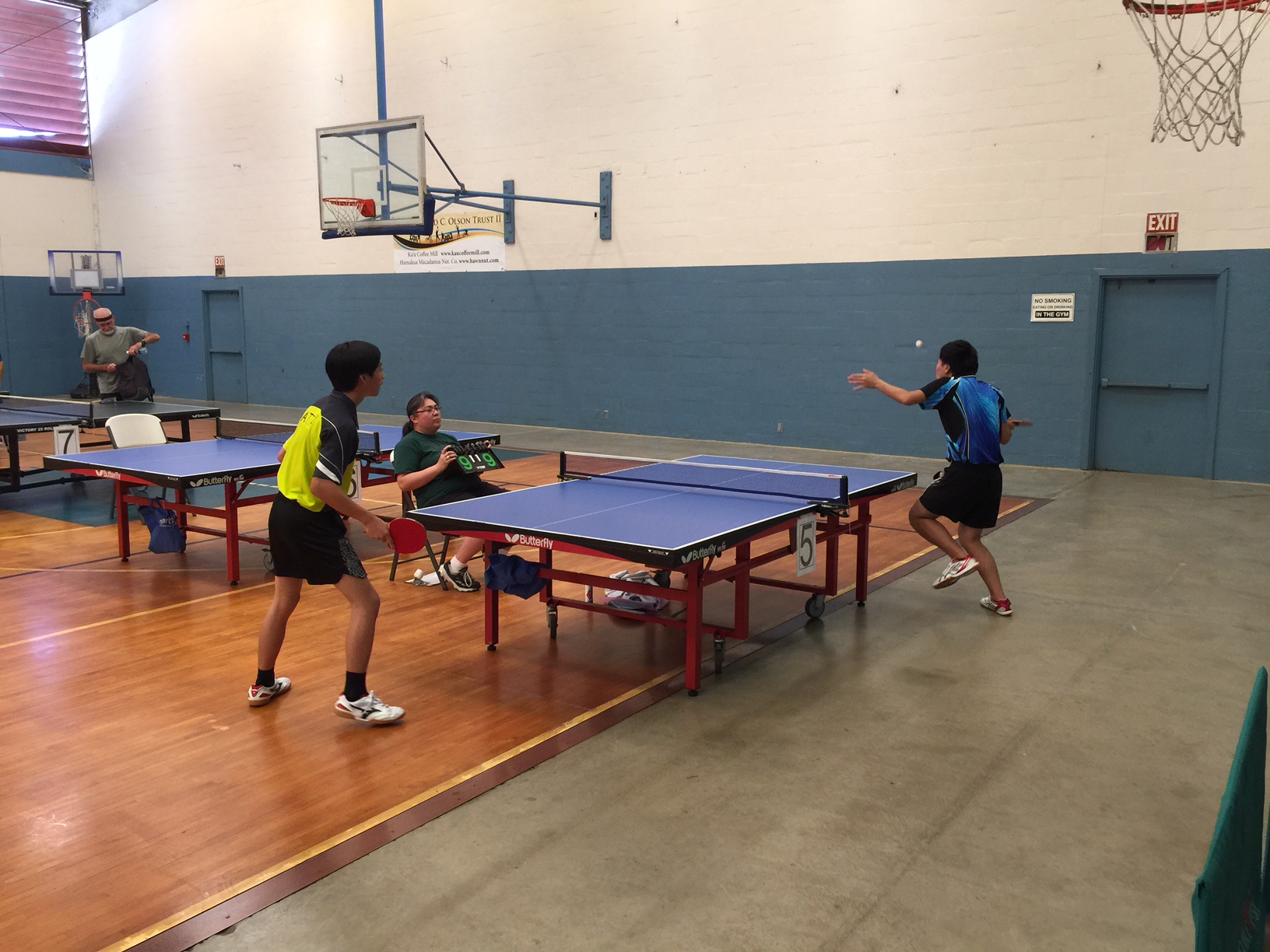 The 2016 Hawai'i Island Open and Aloha State Championships are now history. 67 total players participated including the juniors from the Hilo Boys & Girls Club. We had a player from Australia, Joshua Yee. I found out during the tournament that he came to Hawaii just to play in this event; Mahalo Joshua for coming to play and being a major part of it. Your future as a player is very bright. So many people contributed to make the tournament a success. Thanks to the Hilo Boys & Girls Club for letting us use their great facility; thanks to the Big Island Table Tennis Association for hosting the tournament, and specifically, to Lory Hunter, Jamie Stokes, Russel Oshiro, Stephen Freedman, Clyde Young, and Gloria Wong for all their help. Setting up the tables, cleaning the gym and bathrooms, ordering and picking up food, then displaying the food and making sure everyone was taken care of an absolute team effort by all of them, and a few more that I am probably forgetting. (Sorry for that). Huge mahalos to The Aloha Table Tennis Association from Oahu. Alex and his crew brought more than 20 players of all ages and skill levels to play and make the tournament a huge success. Also, The Association donated around 20 cases of delicious bottled water and lots of ice. As pictures on this page shows, there was plenty of food for all, great variety, and lots of homemade goodies. Starbucks donated 5 gallons of coffee each day that Stewart & Lory Hunter secured, and John Romoa & Gloria made real Kona coffee each morning. We crowned an Aloha State Women's Champion, Ruth Dittmar; an Aloha State Doubles U-3400 Champion Team, Jian Ping Huang/Jaeho Kim; an Aloha State Senior Champion, Takeo Nakamura; and an Aloha State Open Champion, Carlos Ko. Congratulations to our State Champs, all runner ups, and winners of all the other events. The weather was really good for the tournament with neither rain or wind a factor. All players had a good time, many new players got USATT ratings for the first time, players made new friends, and the Aloha Spirit was everywhere. I don't recall anyone requesting an umpire due to any problems arising. We had 12 ladies compete in the special Karen Fujiyama Memorial Women's Open Event, a record number for our women's event. We were filled with 16 doubles teams and have 28 players in our U-1600 event. Those numbers may not sound much to the reader, but we are located on Hawaii Island, small population, hard destination to come to, and not the cheapest place on earth to visit. But we do have some great attractions like the weather, an active volcano, waterfalls, Mauna Kea (largest mountain on Earth when measured from the base), and of course, the best people and the famous Aloha Spirit. A huge mahalo to each and everyone that assisted to make the tournament a tremendous success and that includes all the players!