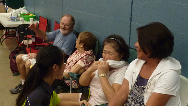 Mahalo Ben Tone from Maui, who graciously brought Len a birthday treat which was given to all the players, delicious donuts downed with donated Starbucks Coffee secured by Lory & Stewart Hunter. Also available both days was authentic Kona Coffee provided by John Romoa & Gloria! MAHALO
